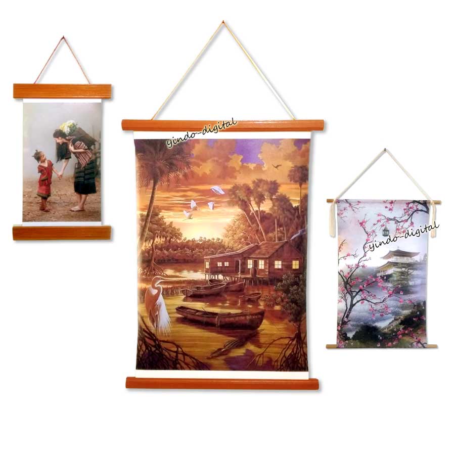 Digital print Yindo menyediakan poster gantung dengan hanging kayu.